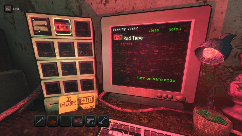 Throughout each level you are aiming to find and cache a number of mysterious crimson cassette tapes. Unfortunately, you have limited inventory space and will often find yourself making the difficult choice between progress and safety. You’ll likely have a weapon or two, a handful of ammunition, maybe a restorative hamburger or some planks for an impromptu barricade, and a red tape that you are ferrying to it’s receptacle. Another thing you have is constant dread. It takes the form of a meter that slowly fills, which once completed unleashes a horde which destroys everything in its path while relentlessly pursuing you. With every additional percentage that bar fills, you feel compelled to walk a little faster, and act a little more recklessly. Until you stumble across a film reel, tempting you from upon a shelf. These reels allow you to save your progress, but only when inserted into a film projector. You could take it there. Using another one of those few valuable inventory slots. All of which are full of equally life-saving items. Is it worth trying to find your way back, whilst leaving something in its place? Who’s to say you’ll even make it? What if you do, but can’t make it back due to the wave of death which chases you? Is safety the best option right now? Bloodtypers made me want to play dangerously. That’s why in spite of my genre preferences, I heartily recommend it.