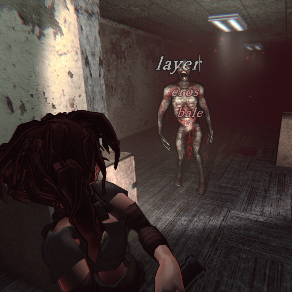 Movement is dictated by typing short strings of letters that you see hovering above a space, after which your character will move to it. Similarly, opening doors, interacting with most objects, or engaging in combat involves copying on screen messages. This may seem like a simple design quirk that the developer chose to make the keyboard a more integral and consistent part of the game experience. Instead I see it as an interesting reinterpretation of the classic clunky third-person shooters which divided movement and combat into two sets of controls which needed to be swapped between. You may always be typing, but you will need to consciously decide whether you are standing your ground to ready your weapon, or attempting to slink away one word at a time. In simpler terms, this is not a movement shooter, and it is absolutely to the game’s benefit.