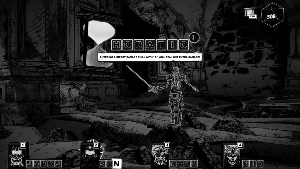 The developers have reinvented nearly every RPG staple for these 26 keys. For example, in the absence of more traditional experienece and levelling systems, your grave-risen adventurers grow stronger by remembering skills that were forgotten long ago on account of being dead for centuries. Who can blame them, I’m surprised their brain matter is still intact in the first place. These terms are recollected through a campaign-long series of guessing games, where letters are slowly revealed through solving challenges, and the categories for each characters words are hinted at through their lore and backstories. The puzzle is reminiscent of Wordle, and is such a unique way to keep you engaged with your team, every character feels like a mystery to be unravelled.