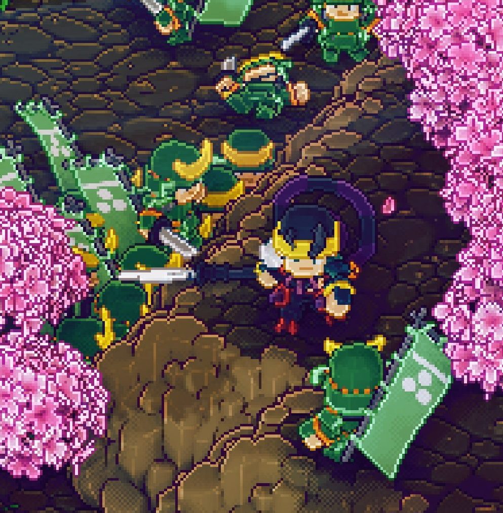 Equal parts beat ‘em up, spectacle fighter, and Dynasty Warriors, Samurai Bringer’s combat has this over the top extravagance executed through simple button sequences. but ‘Spectacle Fighter’ is quite the understatement. Japan’s forces are rendered in a gorgeous pixel art style and dance around the screen performing frankly excessive attack animations. Yet this is just the dazzling style which conceals the true meaty substance of Samurai Bringer. If you are able to uncover and understand it that is.