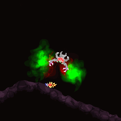 In a flash you can be torn apart, poisoned, trapped, electrified, or even simply explode. It’s only through observing the habits of your assailants that you can have a chance at surviving these cruel waters. Once you grow accustomed to the wildlife of an area and can study them without meeting your end, it becomes fascinating to see what their bodies are actually made of. How they’ve chosen to live, or how they fight for that opportunity at least. In the first area alone the variety is stunning. A balled up vinelike creature bounces off walls and anxiously explodes upon meeting you. A peaceful sea snail roams the walls aimlessly, taunting you with an impenetrable shell. Even a mighty shark who can regenerate from most encounters, and launches his jet-propelled jaws to chase after those who foolishly think they’ve escaped his reach.